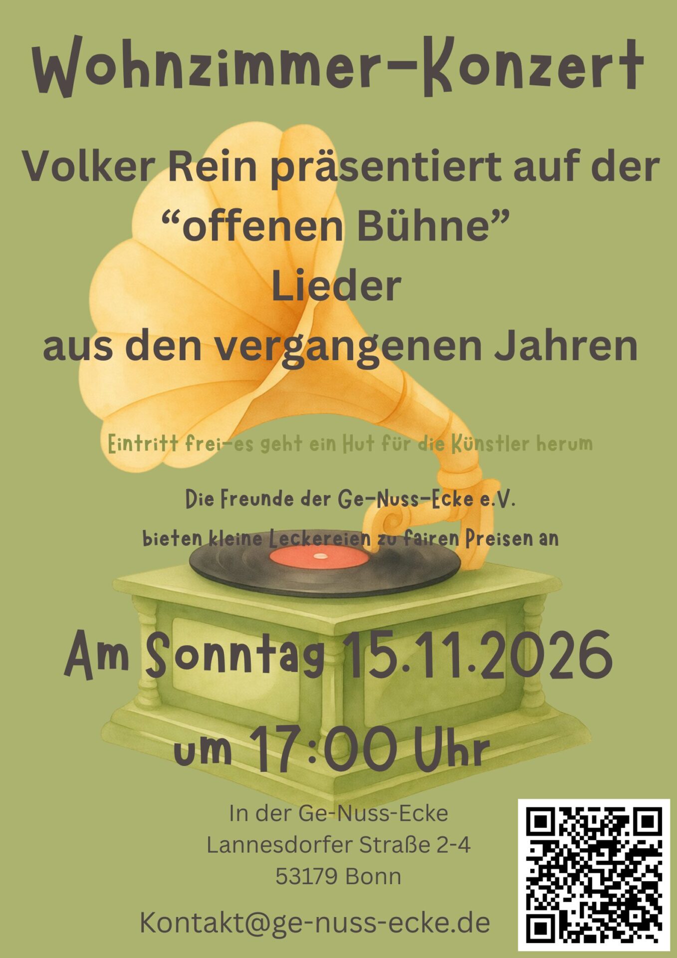 Auf der offenen Bühne trägt Volker Rein Lieder der vergangenen Jahrzehnte vor. Bild erstellt mit Canva |