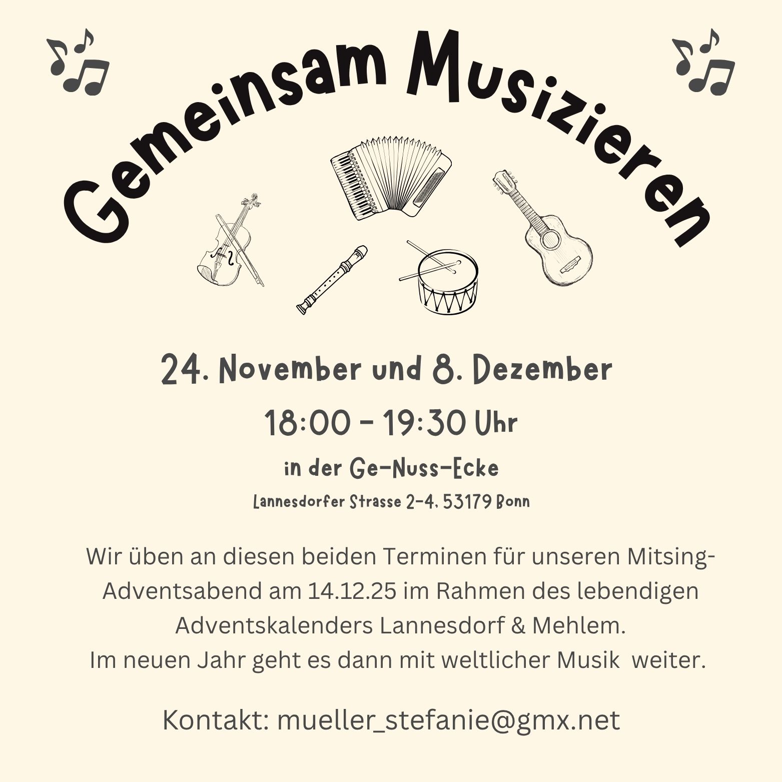 Am 24.11.25 und am 8.12.25 18:00 Uhr in die Ge-Nuss-Ecke, Lannesdorfer Straße 2-4, 53179 Bonn.